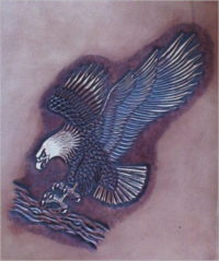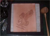 白頭大鷲(冠大鷲?)のカービングを施したバッグを作りました。